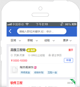 無需下載,沒有平臺、機型的限制,有觸屏手機就能上網找工作!機會不再稍縱即逝,它已在你輕盈的指尖上!